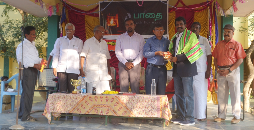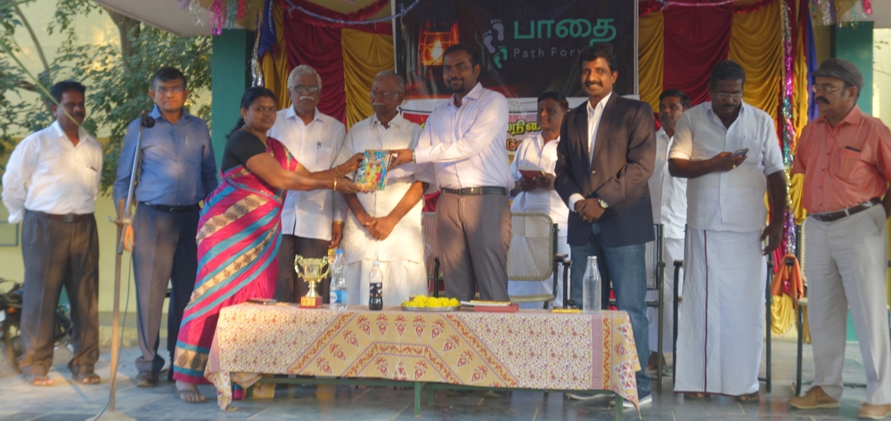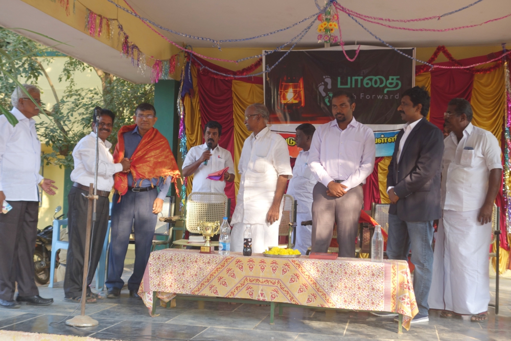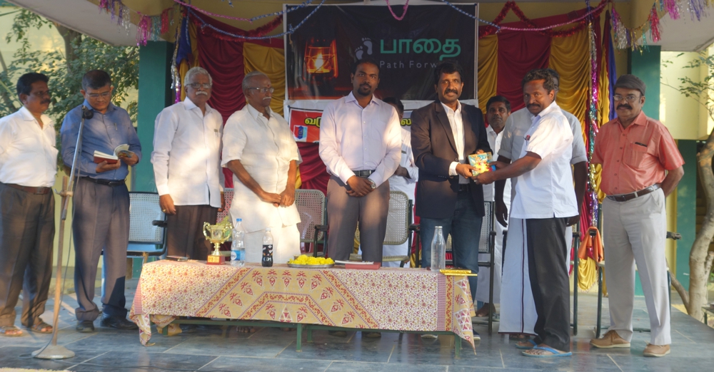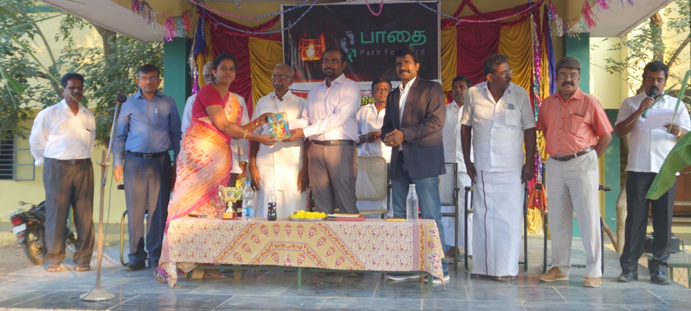 Thanks to Mr. Sibi Adhithya Senthil Kumar I.A.S (Assistant Collector, Thanjavur District) for attending the function as Chief guest, Dr.Rajendran (Retd. Principal, Poondi Pushpam College) and Mr. Mathi (Asst. Head Master) for organizing the function, Mr.Manikandan (Nisaptham Foundation) for providing the Books list, Mr. Santhamoorthi (Proprietor, Noolulagam ) for giving the books at discounted price and Mr.Manickam (Mannaiyin Myntharkal Group) Krishnamoorthy Manickam for designing “Paathai” logo.