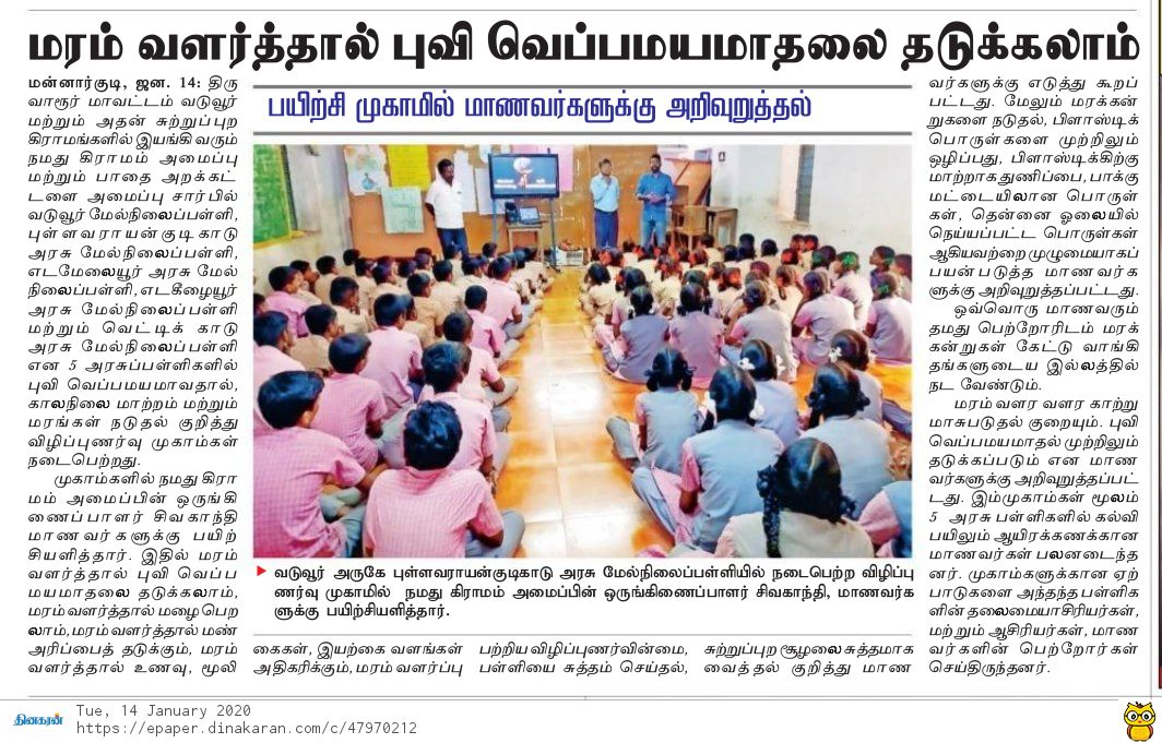 Global Warming awareness workshop for Government School students in Namadhu Kiramam villages schools.