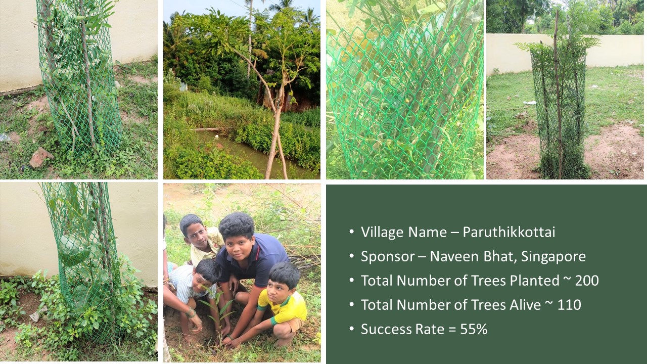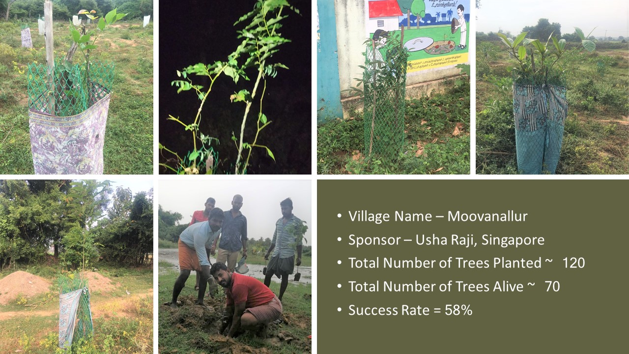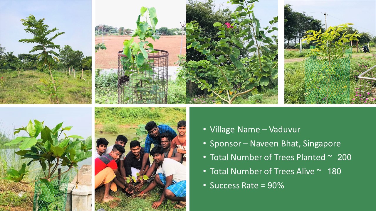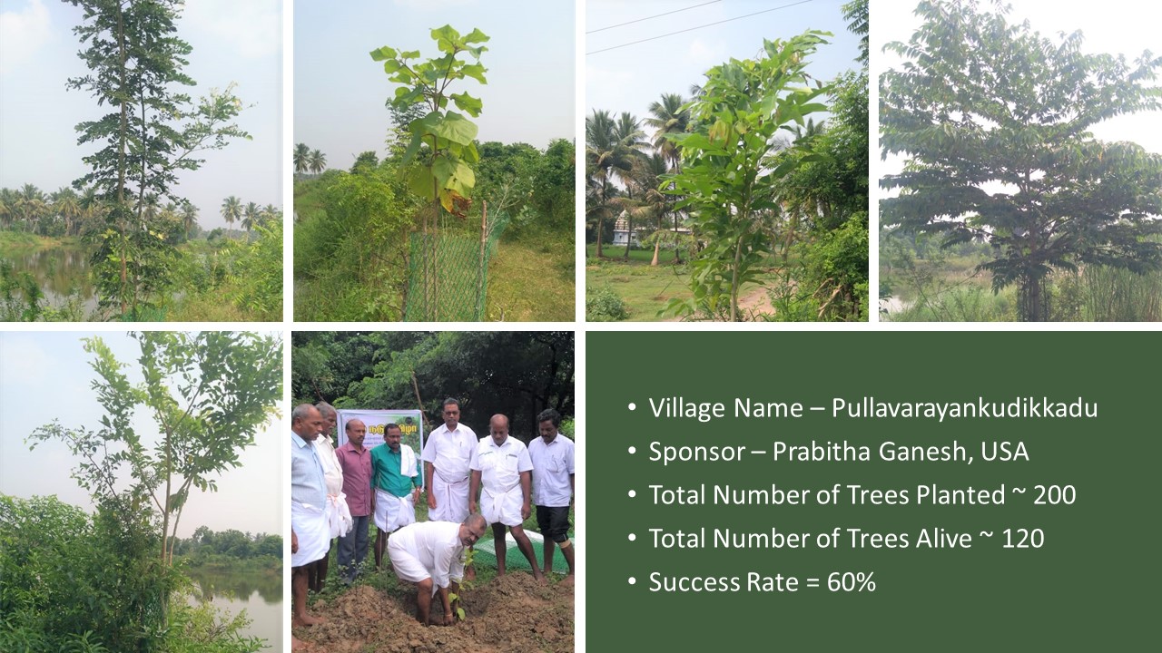 Last year Deepavali on 28-10-2019, “Paathai” Trust in association with “Namadhu Kiramam” celebrated Green Deepavali by planting trees on the banks of the restored water bodies in 2019. We planted ~1560 Trees and on the first anniversary 28-10-2020, ~930 Trees are alive and growing well. I set a realistic target of 50% success rate for this project and very happy with the result of 60% success rate.
